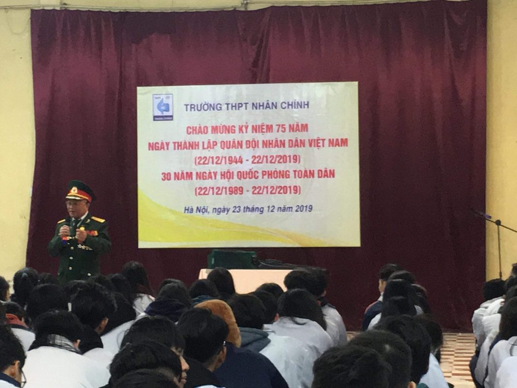 Dân tộc Việt Nam ta vốn tự hào với bề dày lịch sử chống giặc cứu nước, bên cạnh những chiến công vẻ vang, chúng ta không thể nào không nhắc tới sự thành lập Quân đội Nhân dân Việt Nam năm 1944 và ngày hội quốc phòng toàn dân năm 1989. Hôm nay trong không khí tưng bừng, phấn khởi chào mừng 75 năm ngày thành lập Quân đội Nhân dân Việt Nam và 30 năm ngày hội Quốc phòng toàn dân, Đoàn trường THPT Nhân Chính đã có buổi giao lưu, gặp gỡ với các bác cựu chiến binh, nhân chứng lịch sử đầy ý nghĩa.