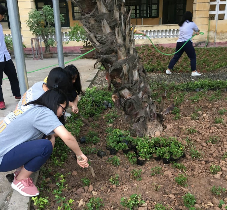 BCH Đoàn trường đã phân chia các khu vực cây cảnh trong khuôn viên nhà trường và hướng dẫn các lớp tham gia chăm sóc vườn hoa. Ngày 2 lần sẽ có ĐVTN các lớp thay nhau tưới nước, chăm sóc, trồng thêm cây con. Đây là 1 hoạt động thiết thực giúp các bạn ĐVTN thư giãn sau những giờ học căng thẳng và cũng giúp các bạn nâng cao nhận thức, ý thức về việc cải thiện và bảo vệ môi trường sống.