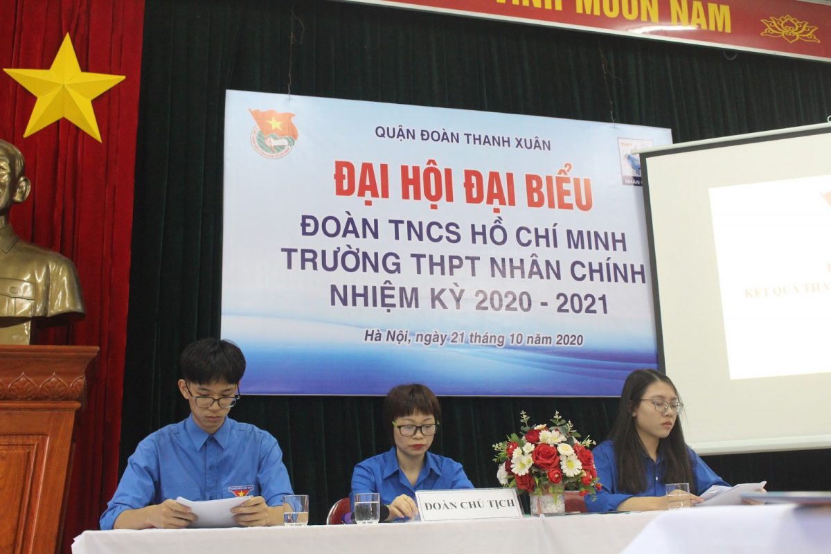 Chiều ngày 21/10/2020, trường THPT Nhân Chính đã long trọng tổ chức Đại hội đại biểu Đoàn TNCS Hồ Chí Minh trường Nhân Chính nhiệm kì 2020-2021 nhằm đánh giá, tổng kết công tác Đoàn và phong trào Thanh niên nhiệm kì 2019-2020, đồng thời đề ra hướng hoạt động công tác Đoàn và phong trào Thanh niên nhiệm kì 2020-2021. Các đại biểu tham dự đại hội gồm có: