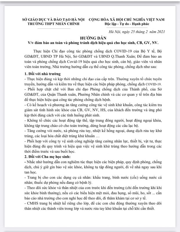 Thông tin tuyển sinh và những điều cần biết khi nhập học vào lớp 10 trường THPT Nhân Chính năm học 2020 – 2021
