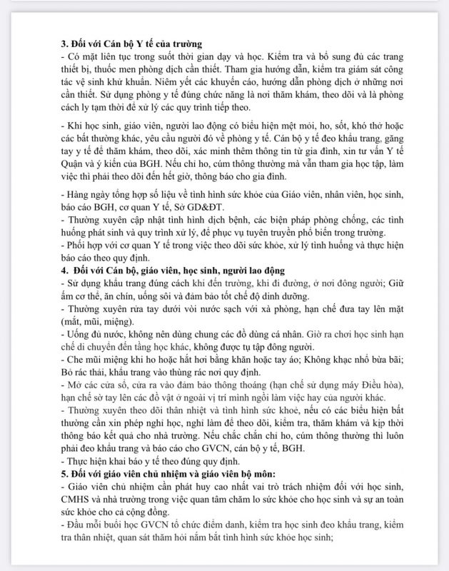 Thông báo về việc cho học sinh trở lại trường học sau thời gian tạm dừng đến trường để phòng, chống dịch bệnh Covid-19