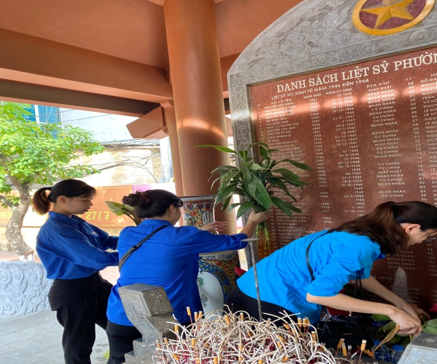 CLB Tình nguyện viên phối hợp với Đoàn TN phường Nhân Chính tham gia dâng hương và vệ sinh nhà bia liệt sĩ trong nhiều ngày Lễ của đất nước
