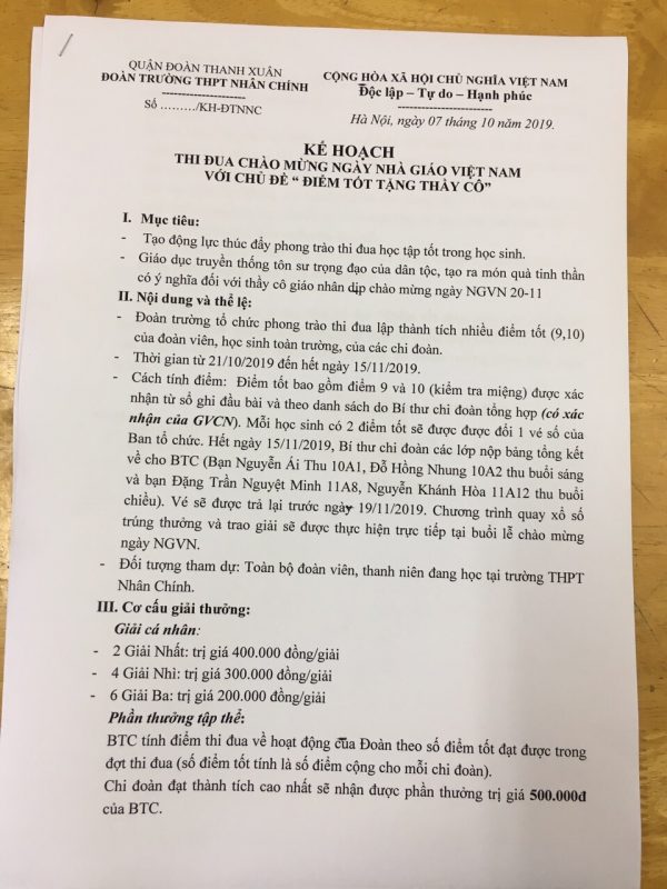 Kế hoạch tổ chức hoạt động chào mừng ngày nhà giáo việt nam 20.11 năm học 2020 – 2021