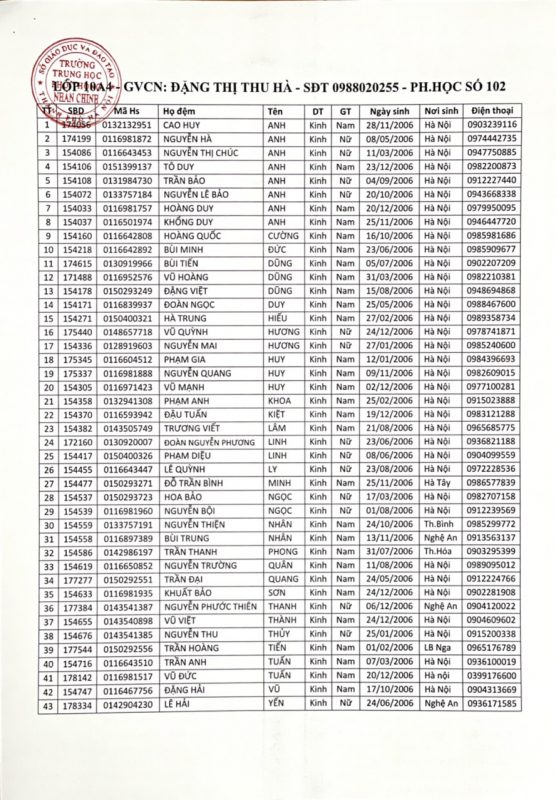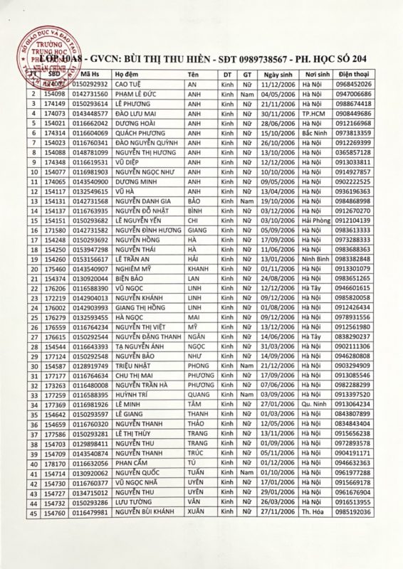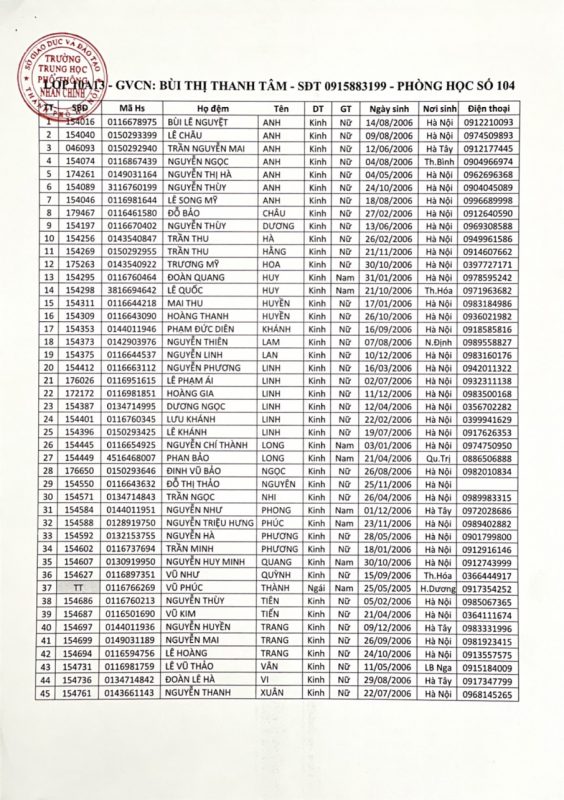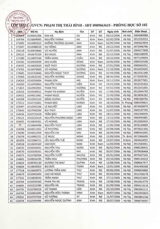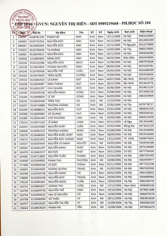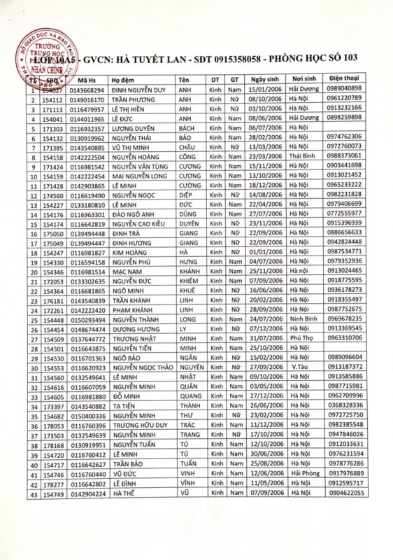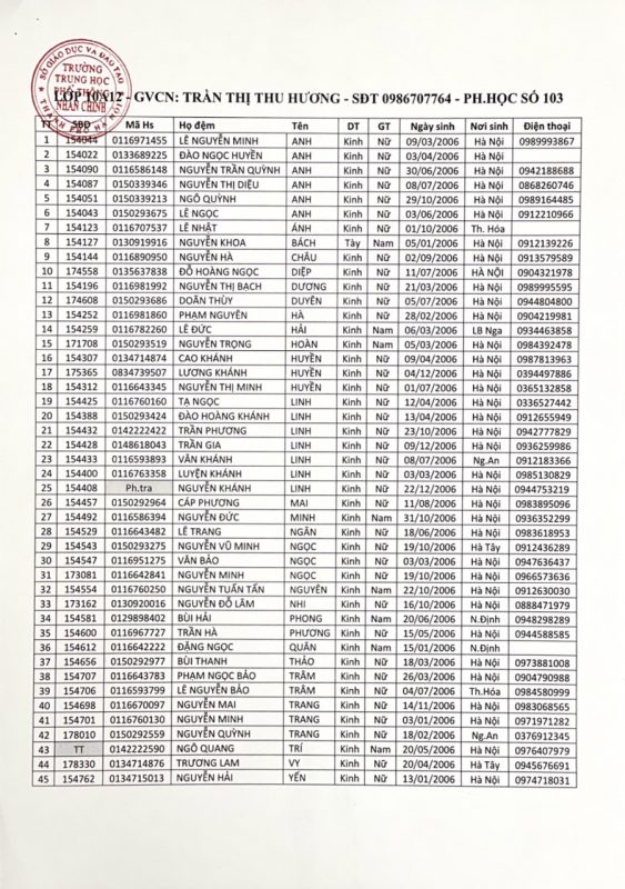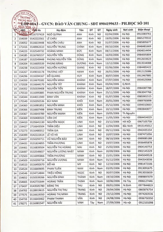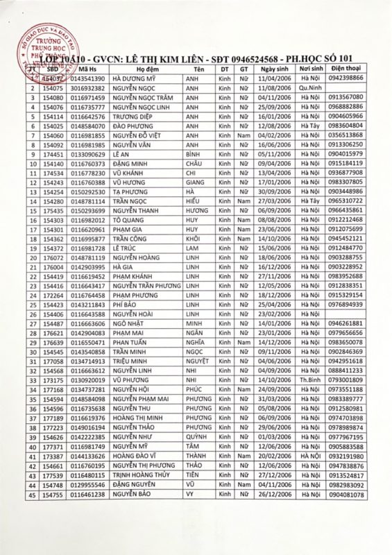 Trân trọng gửi tới Quý vị phụ huynh và các em học sinh danh sách 13 lớp 10 năm học 2021-2022 . Trong đó các lớp cơ bản A bao gồm các lớp: 10A1, 10A2. Các lớp cơ bản A1: 10A3, 10A4, 10A5, 10A6, 10A7. Các lớp cơ bản D: 10A8, 10A9, 10A10, 10A11, 10A12, 10A13. Nhà trường sẽ thông báo những kế hoạch dạy và học trong năm học mới sau khi có chỉ đạo của Sở Giáo dục và Đào tạo. Trân trọng!