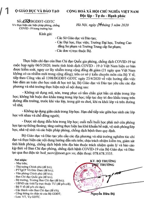 Thông báo về việc cho học sinh trở lại trường học sau thời gian tạm dừng đến trường để phòng, chống dịch bệnh Covid-19