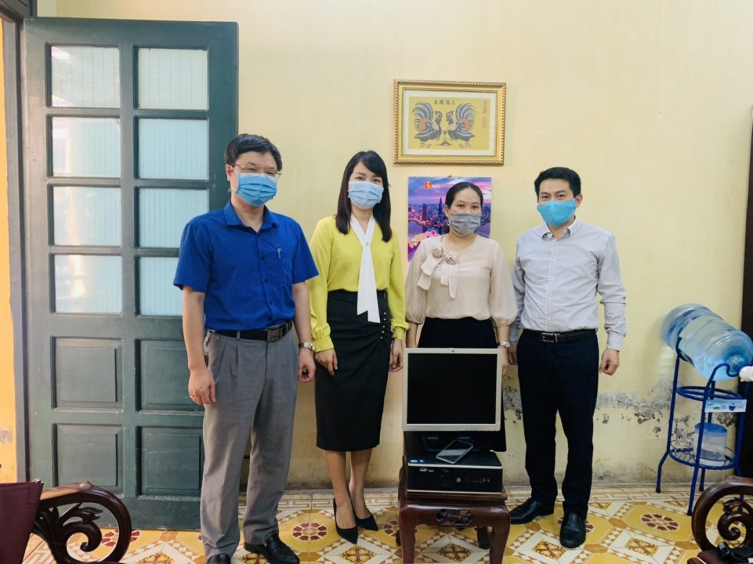 Nhà trường thay măjt trao tặng cho gia đình HS Lâm Phương Thảo (lớp 11A11) bộ máy tính bàn.