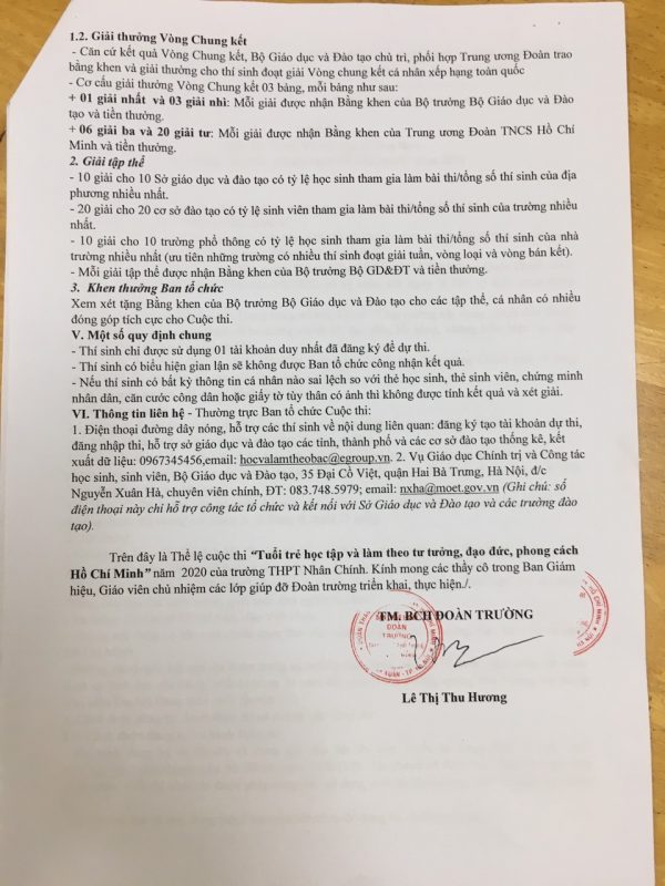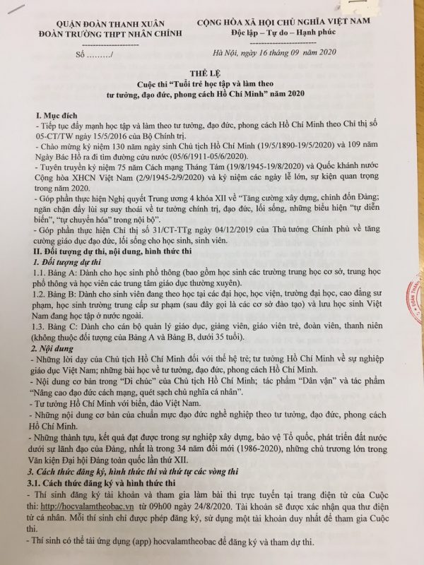 ĐOÀN TRƯỜNG THPT NHÂN CHÍNH