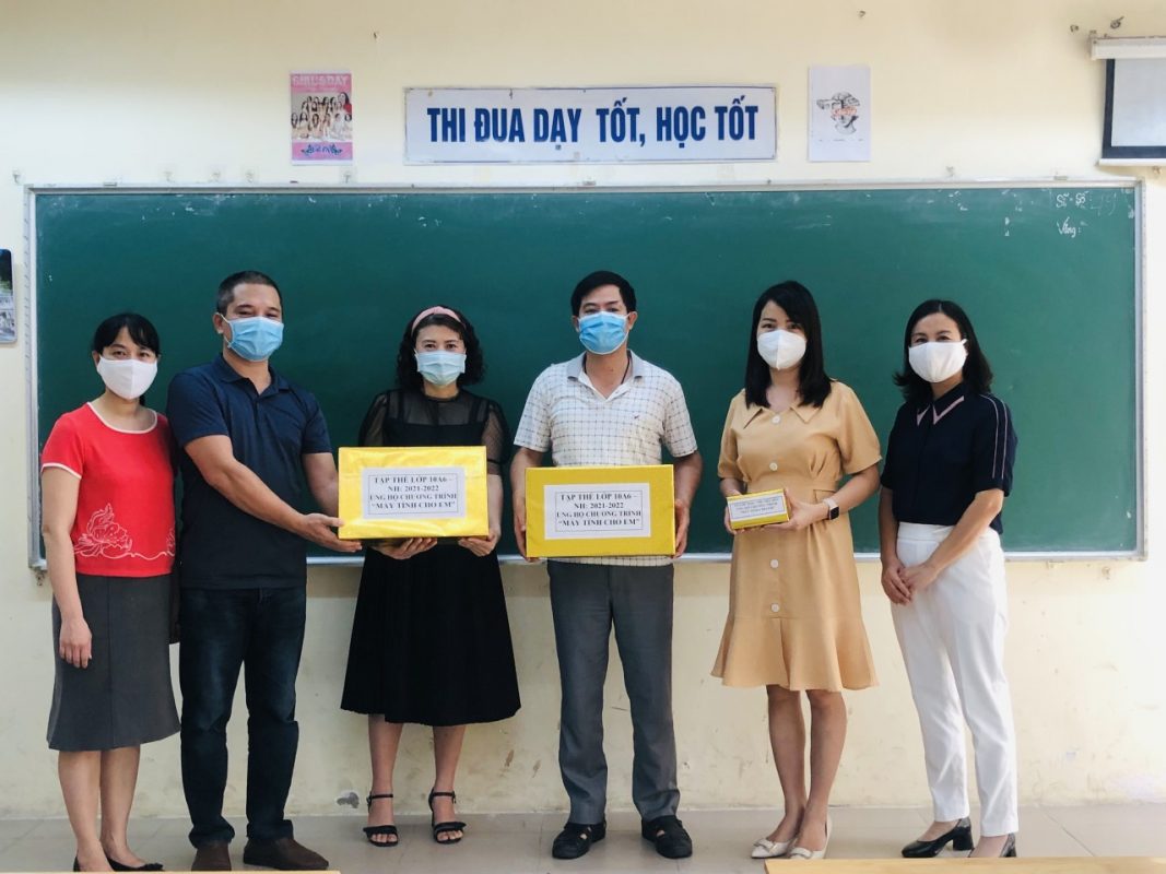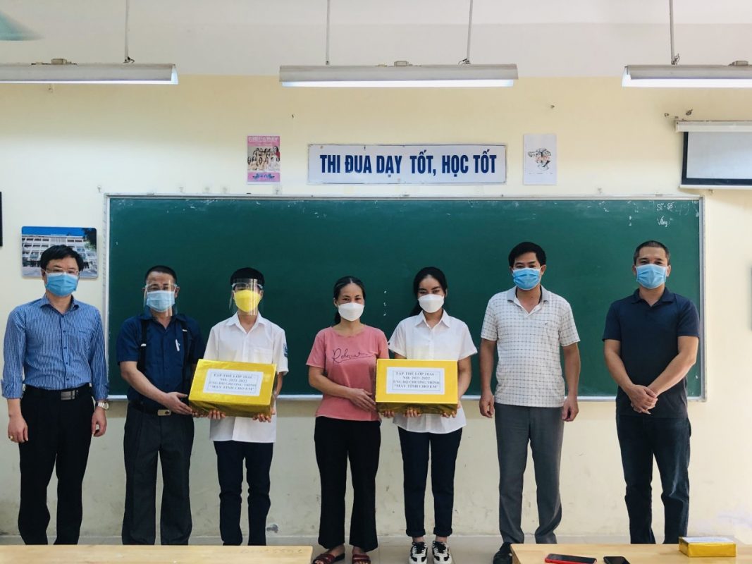 Nhà trường thay mặt trao tặng cho 02 HS có hoàn cảnh đặc biệt khó khăn em: Nguyễn Đức Huy và Nguyễn Vũ Minh Nguyệt học sinh lớp 10A6