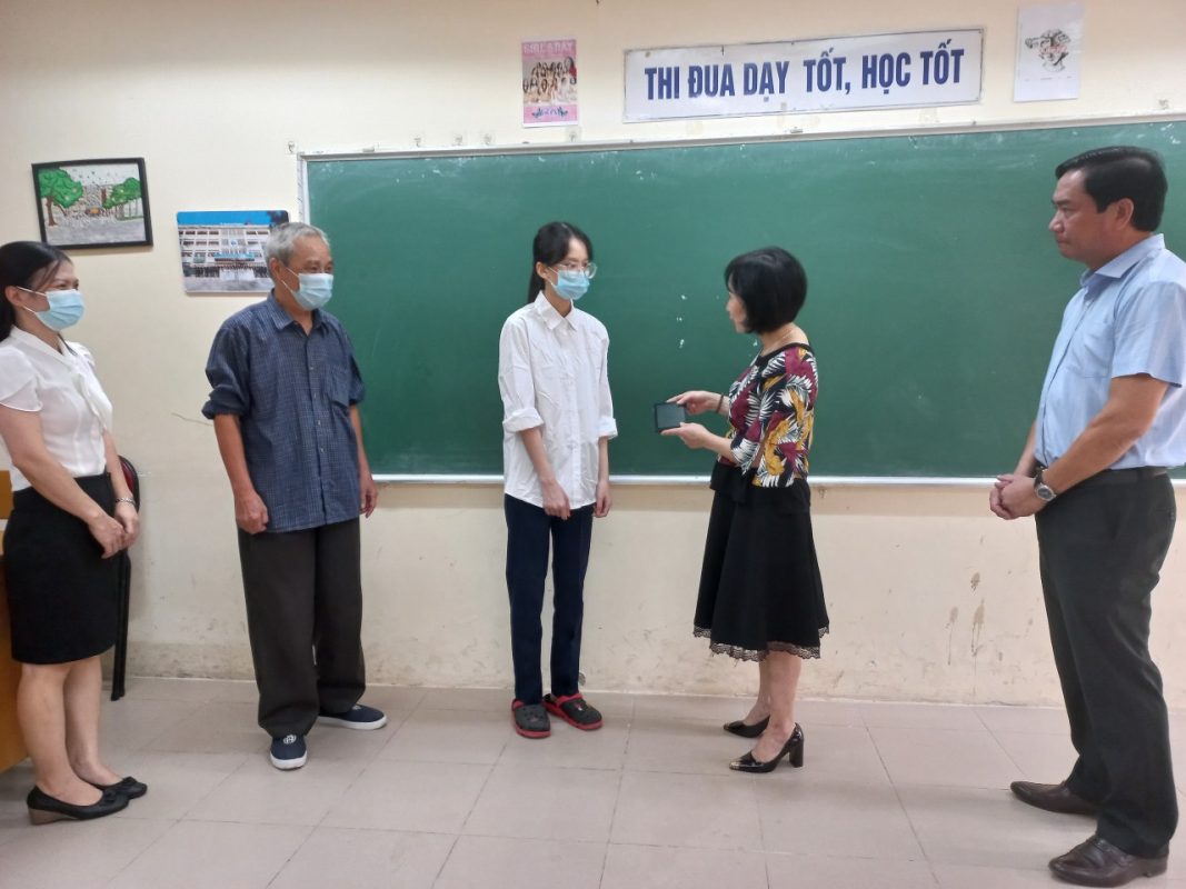 Hưởng ứng cuộc vận động của toàn ngành GD theo Công văn số số 3161/LT: SGDĐT-CĐN về việc vận động các đơn vị cá nhân hưởng ứng chương trình “Máy tính cho em” năm 2021. CĐ trường phát động ủng hộ trong toàn thể CBGV-NV, PHHS, HS đóng góp tham gia chương trình “Máy tính cho em” nhằm giúp đỡ các học sinh có hoàn cảnh khó khăn không đủ điều kiện về trang thiết bị học tập. trường THPT Nhân Chính đã phát động đợt quyên góp thiết bị phục vụ học online năm 2021 từ ngày 17/9 đến ngày 15/10. Ngay những ngày đầu phát động, chương trình đã nhận được những sự ủng hộ tích cực của GV, CMHS. Ban giám hiệu và BCH Công đoàn nhà trường đã rà soát nhanh và quyết định ưu tiên trao tặng món quà ý nghĩa nhận được đầu tiên là một chiếc máy tính bảng (do PHHS Lê Công Duy lớp 12A11 tặng) cho học sinh Nguyễn Thị Diệu Anh- lớp 10A12 để kịp thời giúp em có thiết bị học tập online. Học sinh Nguyễn Thị Diệu Anh là một tấm gương về nghị lực vượt khó, vươn lên và không ngừng cố gắng học tập trong hoàn cảnh gia đình có rất nhiều khó khăn. Sáng ngày 22/9/2021, Ban giám hiệu, Công đoàn và đại diện CMHS nhà trường, lớp, CMHS em Lê Công Duy, GVCN lớp 10A12 đã động viên và trao quà cho em Nguyễn Thị Diệu Anh và gia đình, động viên em tiếp tục cố gắng hơn nữa để đạt kết quả học tập, rèn luyện tốt.