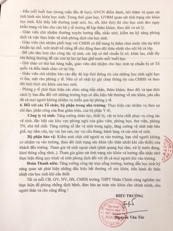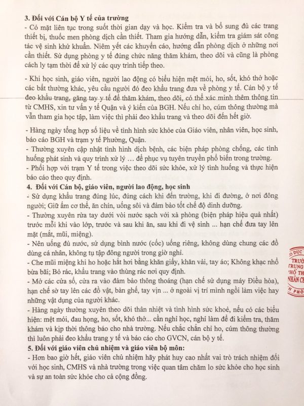 Hướng dẫn đảm bảo an toàn và phòng tránh dịch hiệu quả cho học sinh, cán bộ, giáo viên, nhân viên