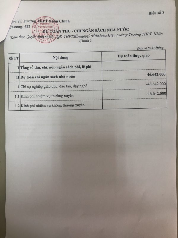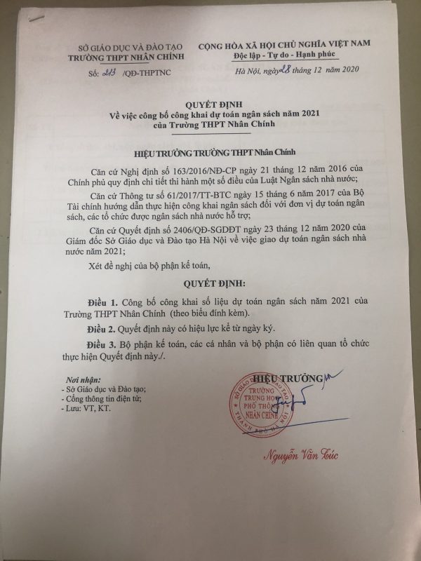 Bài viết Công bố công khai dự toán ngân sách năm 2021 của trường thpt nhân chính đã xuất hiện đầu tiên vào ngày .